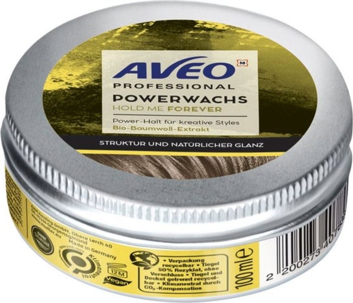 S voskom Professional od AVEO dodáte svojmu účesu štruktúru, prirodzený lesk a silnú fixáciu. Vosk na vlasy s extraktom z bavlny neobsahuje silikóny a je vegánsky.