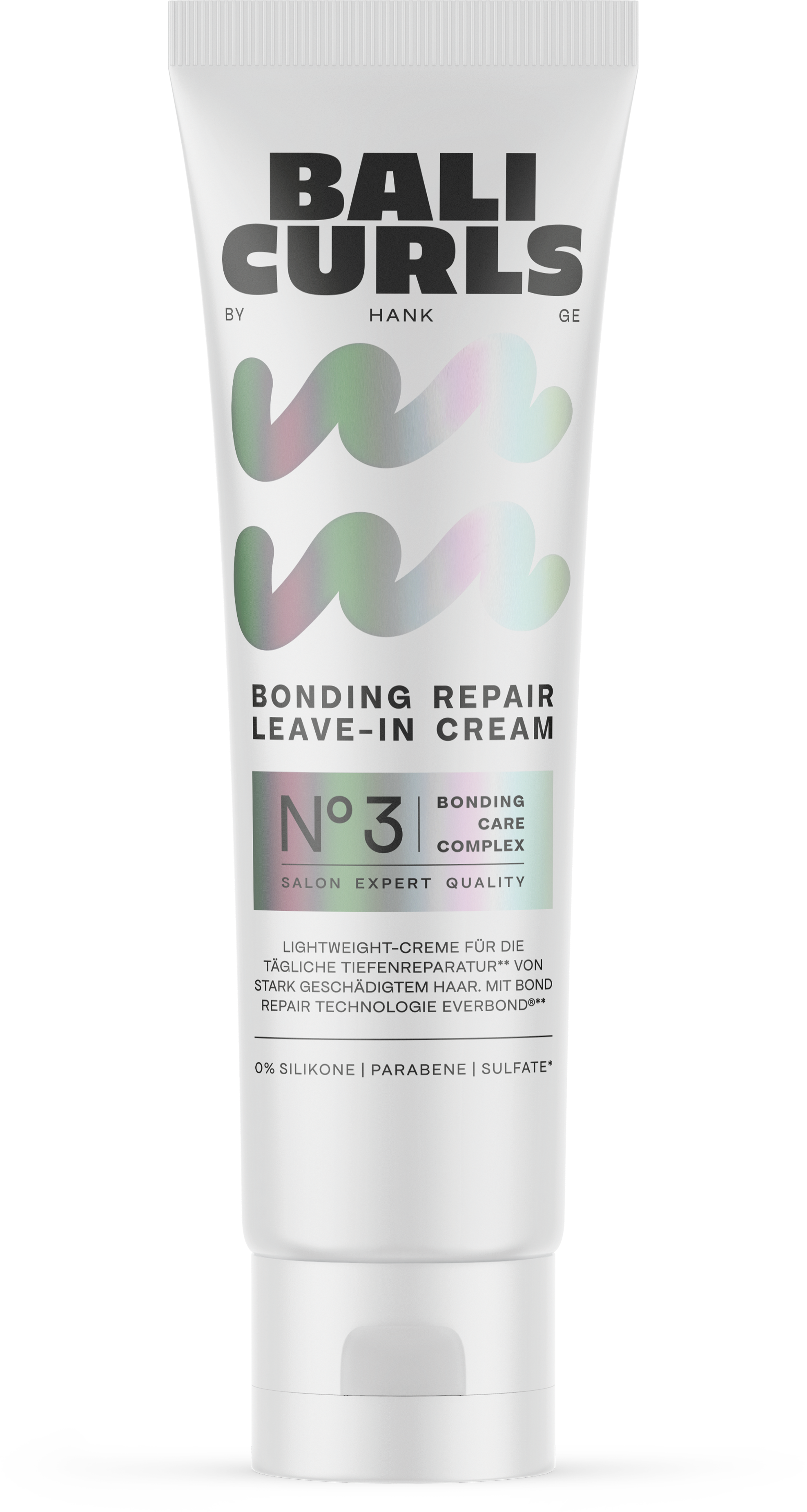 Bonding Repair Leave-In Cream N°3 od BALI CURLS je intenzívne regeneračný leave-in produkt na poškodené alebo chemicky ošetrené vlasy. Vyhladzuje kutikulu, uzatvára vlasy a zabraňuje ich ďalšiemu poškodeniu. Zloženie neobsahuje silikóny, parabény a sulfáty.