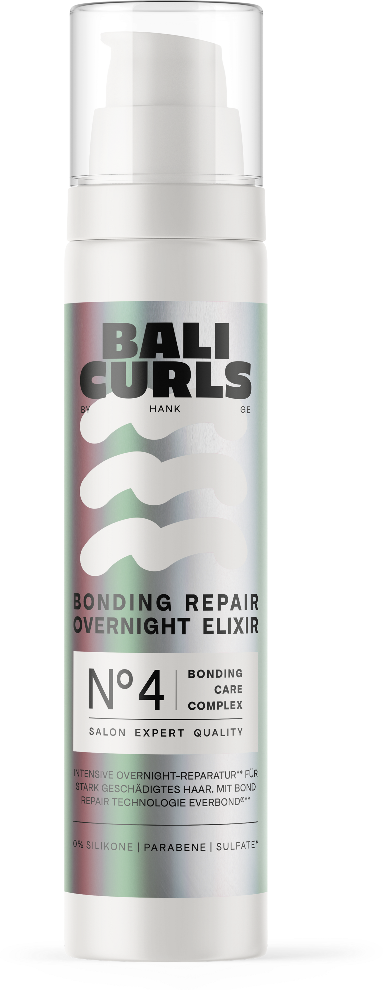 Bonding Repair Overnight Elixir N°4 od BALI CURLS slúži ako intenzívna nočná kúra pre namáhané, poškodené alebo chemicky ošetrené vlasy. Rastlinná alternatíva keratínu, bambucké maslo a technológia Everbond® Bond Repair posilňujú a ošetrujú vlasy do hĺbky. Vlasy získajú späť svoju pružnosť a krásny lesk. Po použití nie je potrebné opláchnutie.