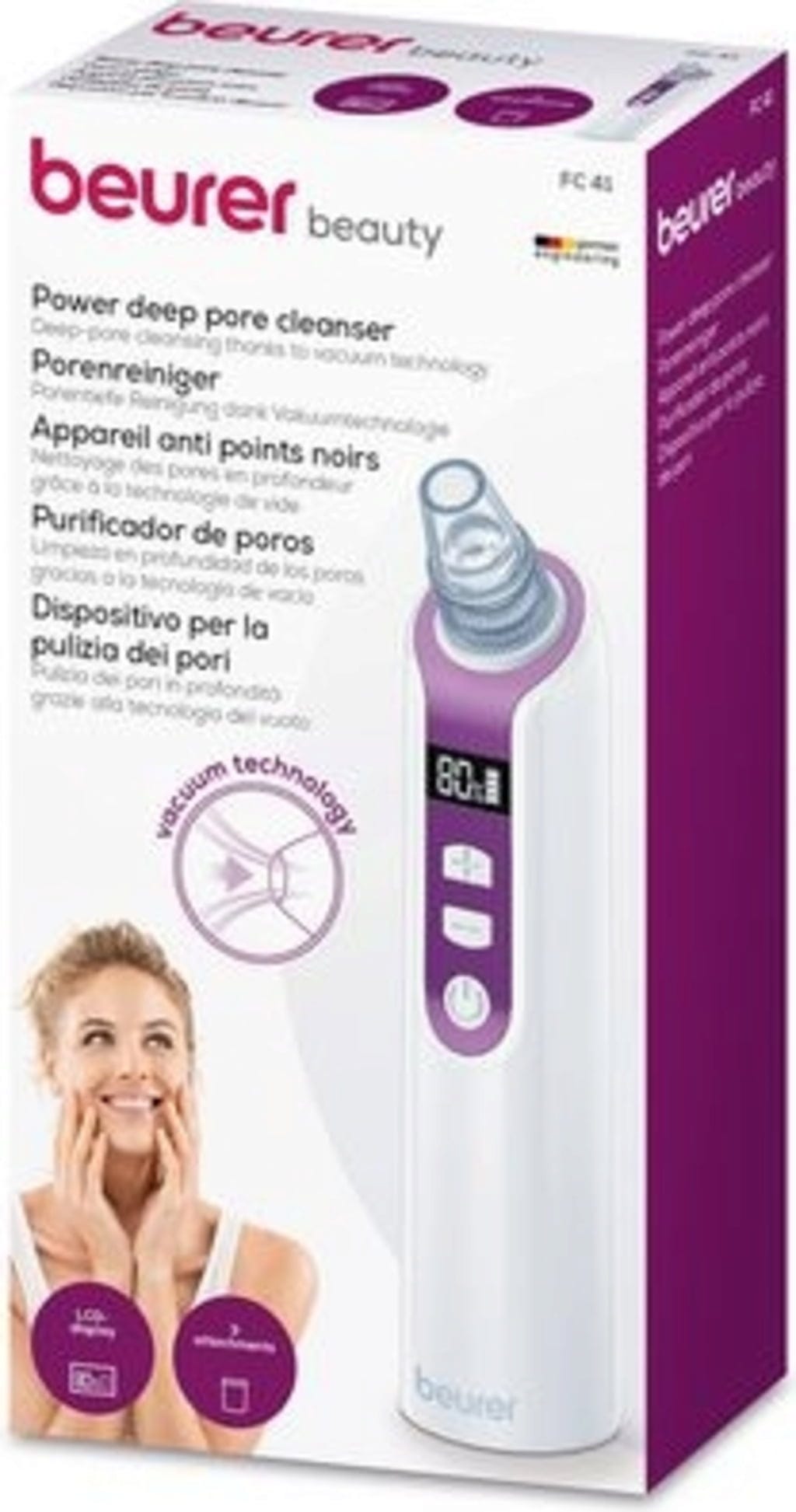 Čistič pórov FC 41 od Beurer dokáže odstrániť nečistoty pleti, ako sú pupienky alebo čierne bodky, a tým podporiť čistotu a vzhľad pleti. Každý nadstavec má svoju vlastnú funkciu: s oválnym nadstavcom možno vďaka odsávaniu zlepšiť pružnosť pleti. Okrúhly nadstavec je vhodný na čistenie veľkých plôch, zatiaľ čo malý nadstavec sa dostane na ťažko dostupné miesta.