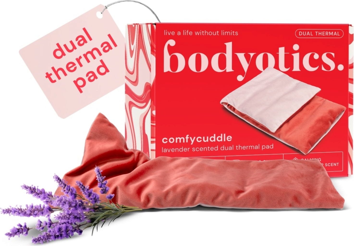 Vankúšik ComfyCuddle od spoločnosti Bodyotics s mäkkou zamatovou tkaninou poskytuje luxusný zážitok a je ideálny na použitie počas menštruácie, popôrodnej rekonvalescencie, tehotenstva alebo návalov tepla. Možno ho jednoducho krátko ohriať v mikrovlnnej rúre alebo schladiť v mrazničke. Náplň z ľanových semienok udržiava teplo mimoriadne dlho, zatiaľ čo kvety levandule majú príjemnú vôňu.