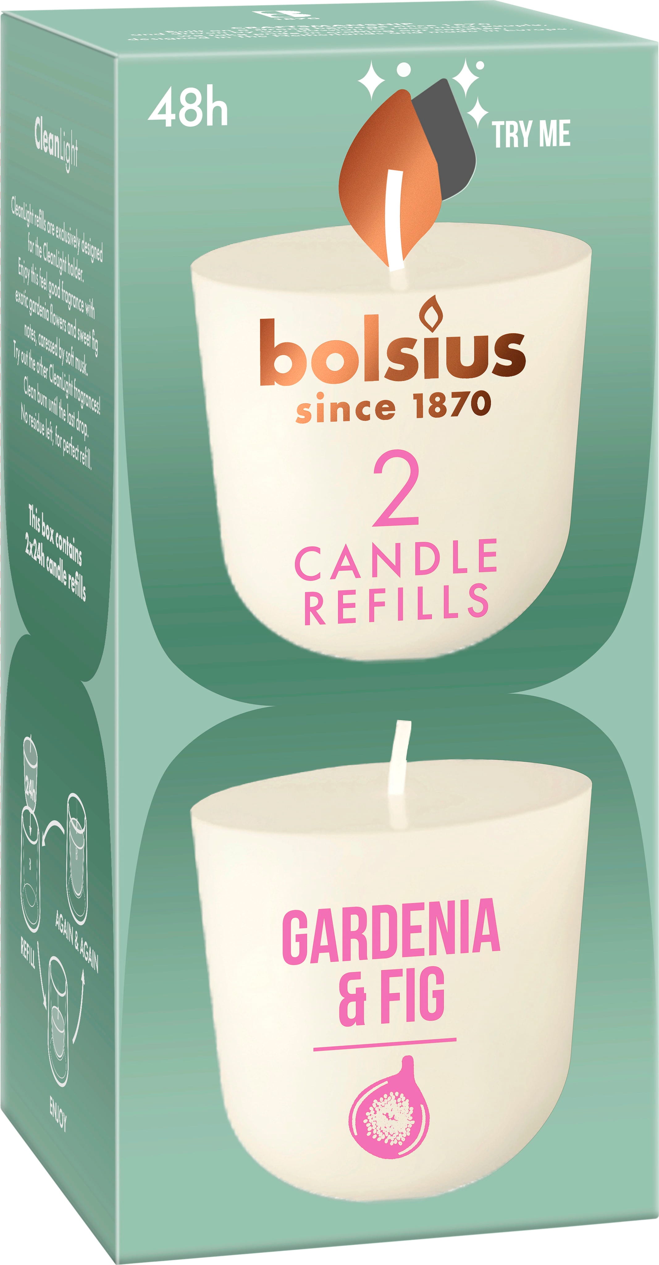 bolsius Náhradné sviečky CleanLight ScentMax (balenie 2 ks), Gardenia & Fig