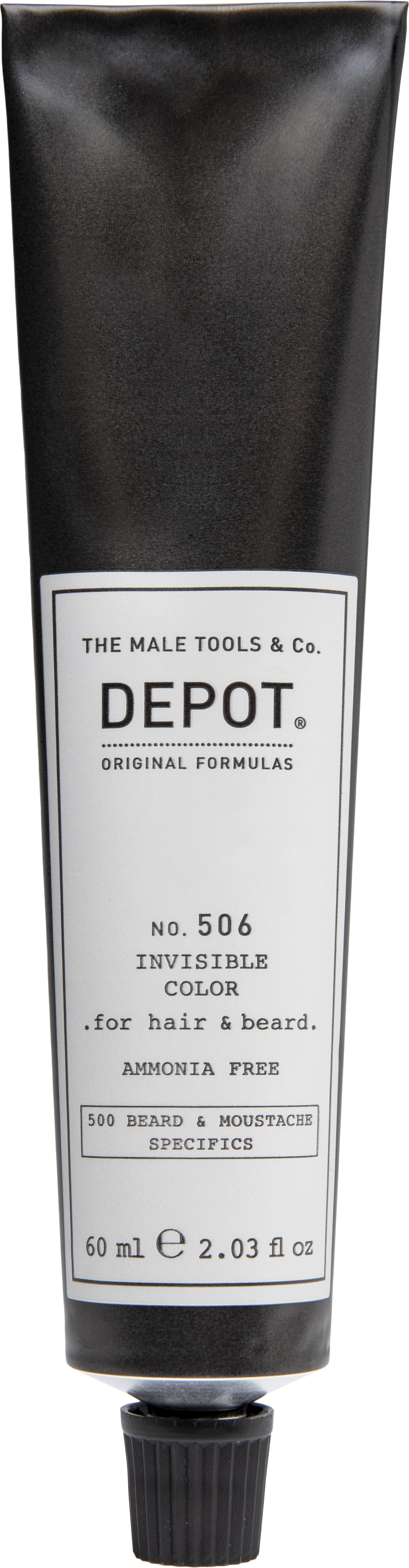 N° 506 Invisible Color značky Depot je semi-permanentný farbiaci krém bez amoniaku a možno ho použiť na vlasy a fúzy. Výťažok z hamamelu, rozmarínu a provitamín B5 vlasy navyše ošetrujú.