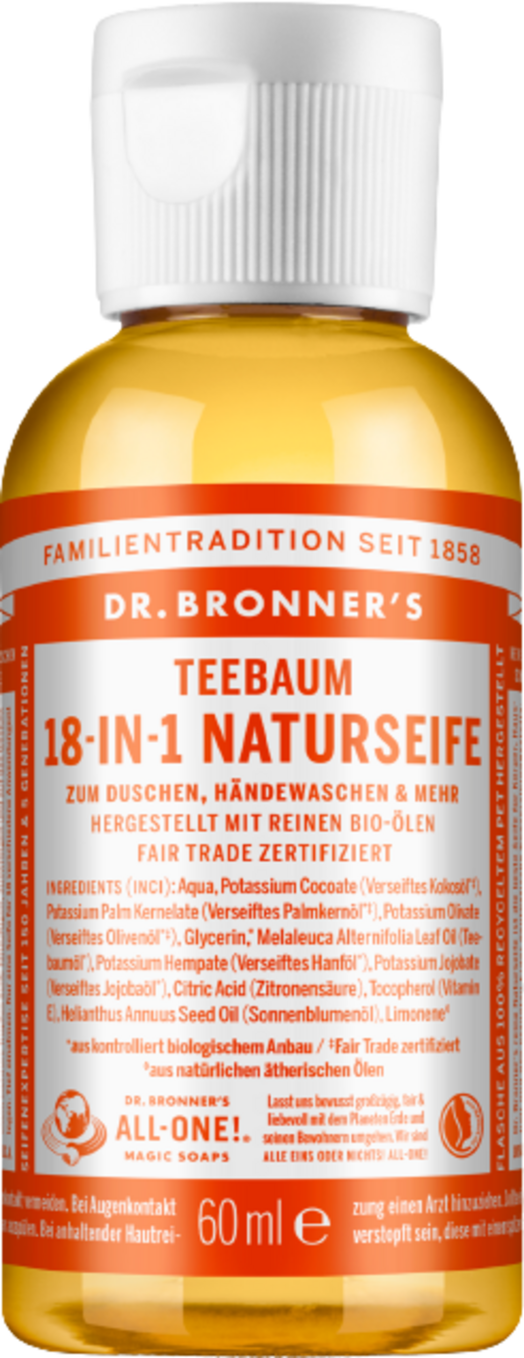 Dr. Bronner's Prírodné mydlo s čajovníkom 18v1, 60 ml