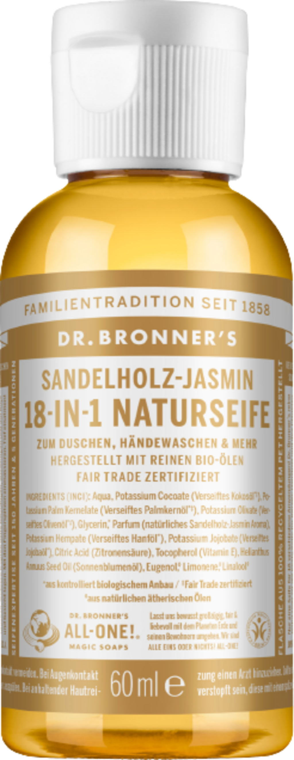 Dr. Bronner's Prírodné mydlo so santalovým drievkom a jazmínom 18v1, 60 ml