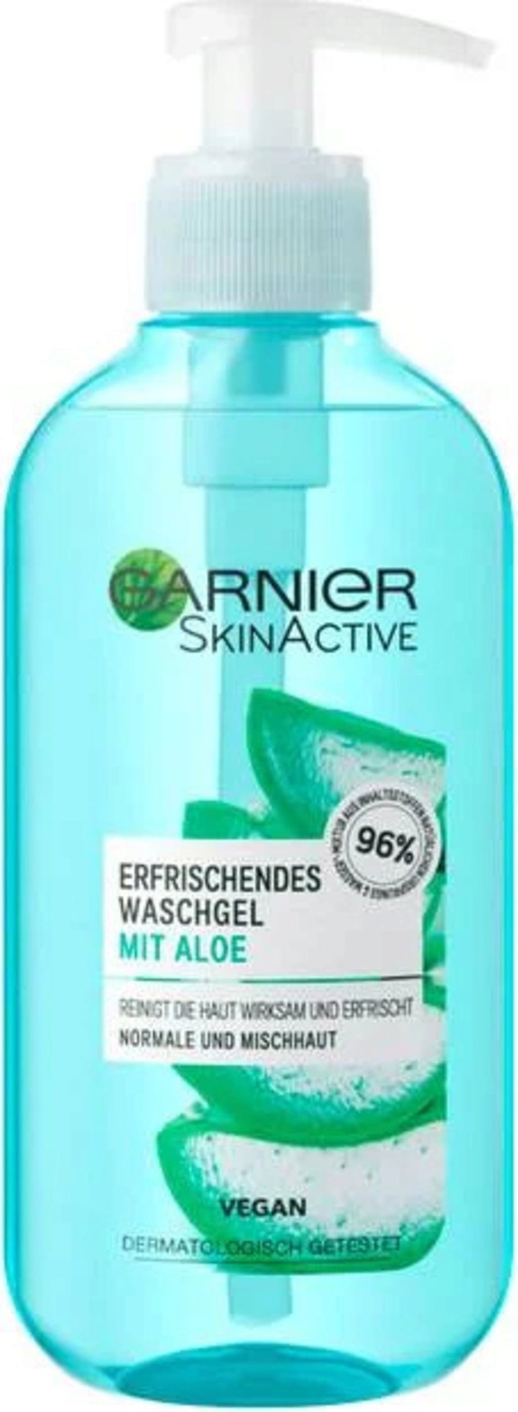 Čistiaci gél s aloe vera SkinActive od GARNIER účinne odstraňuje prebytočný kožný maz, nečistoty a špinu. Osviežujúca receptúra obsahuje zmes 96 % vody a zložiek prírodného pôvodu a navyše sa dá ľahko dávkovať pomocou praktického dávkovača s pumpičkou. Obsiahnuté aloe vera má navyše hydratačný účinok. Pre vyčistenú, osvieženú a posilnenú pleť.