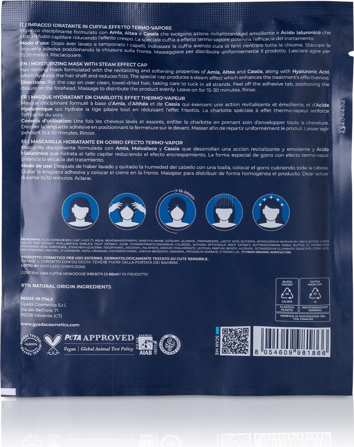 GYADA Cosmetics Hyalurvedic revitalizačná látková maska na vlasy, 60 ml