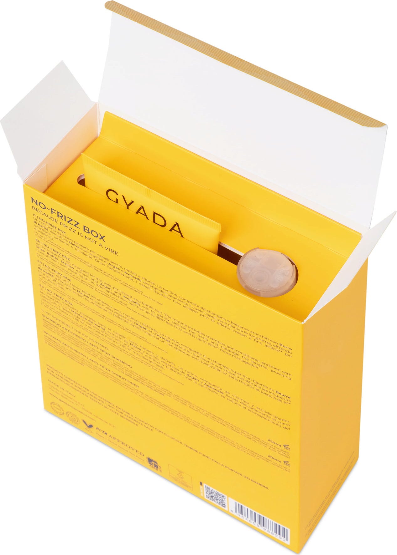 Exkluzívny darčekový No-Frizz Box obsahuje duo starostlivosti pre suché, poškodené a krepovité vlasy. Skladá sa zo šampónu a kondicionéra, ktoré sú obohatené o bambucké maslo, výťažok zo slezu a arganový a avokádový olej, ktoré jemne čistia pokožku hlavy, uľahčujú rozčesávanie vlasov, vyživujú ich a dodávajú im lesk.