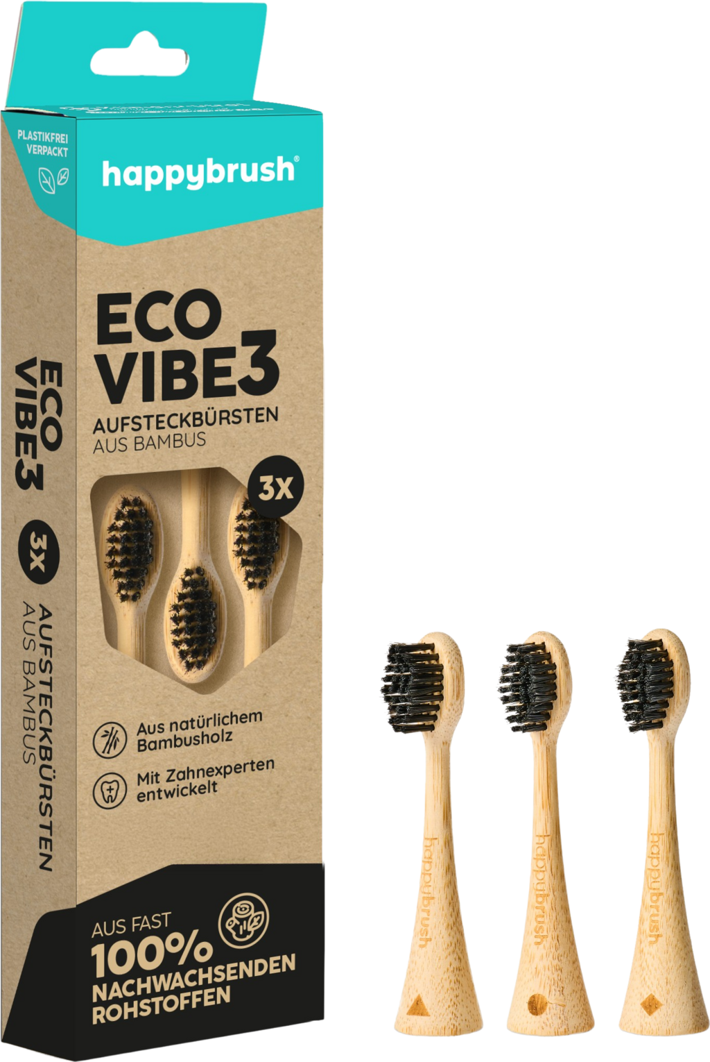 happybrush Bambusové náhradné hlavice kefky ECO VIBE 3