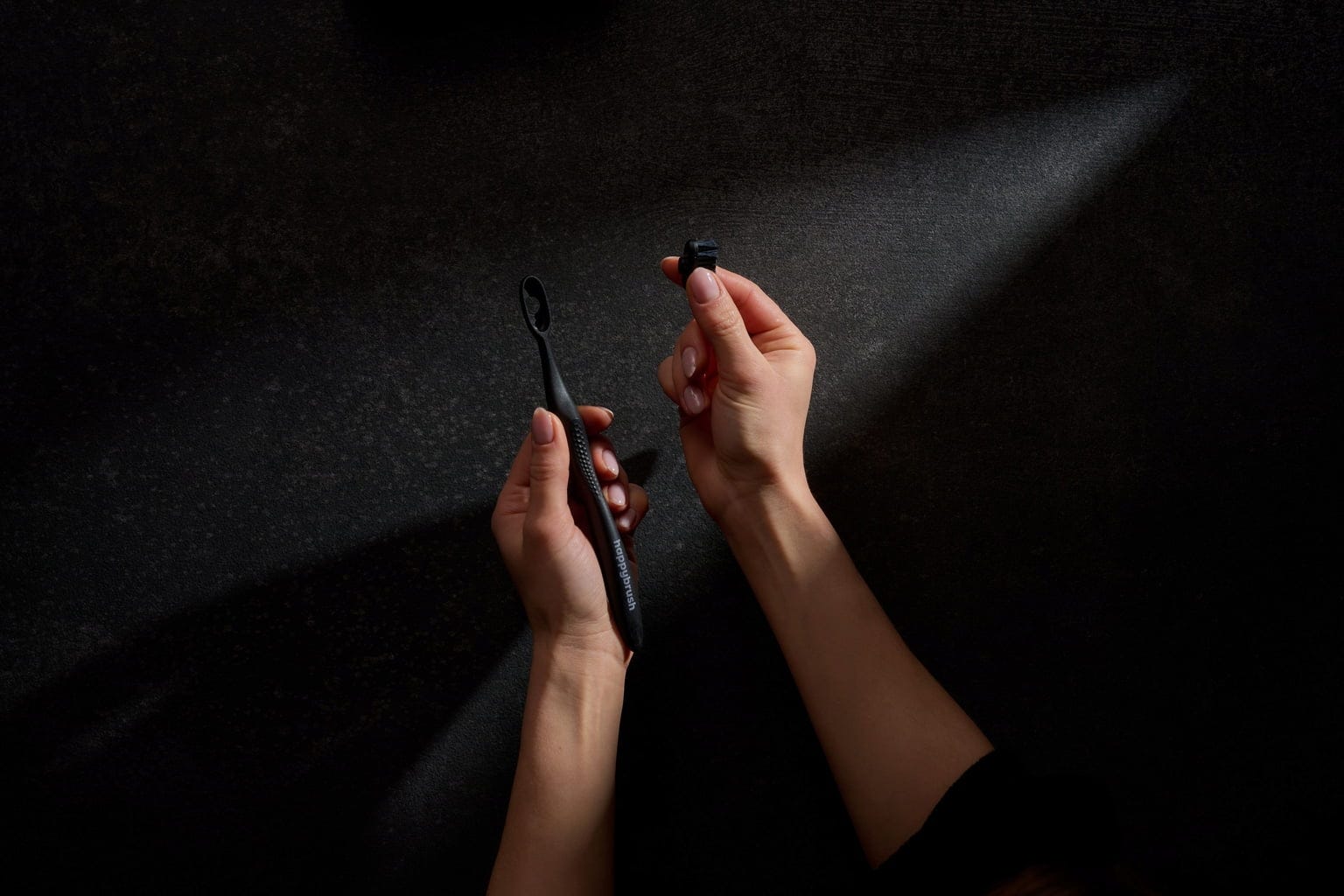 - Pre nasadenie novej hlavice stlačte smajlík na zadnej strane zubnej kefky.