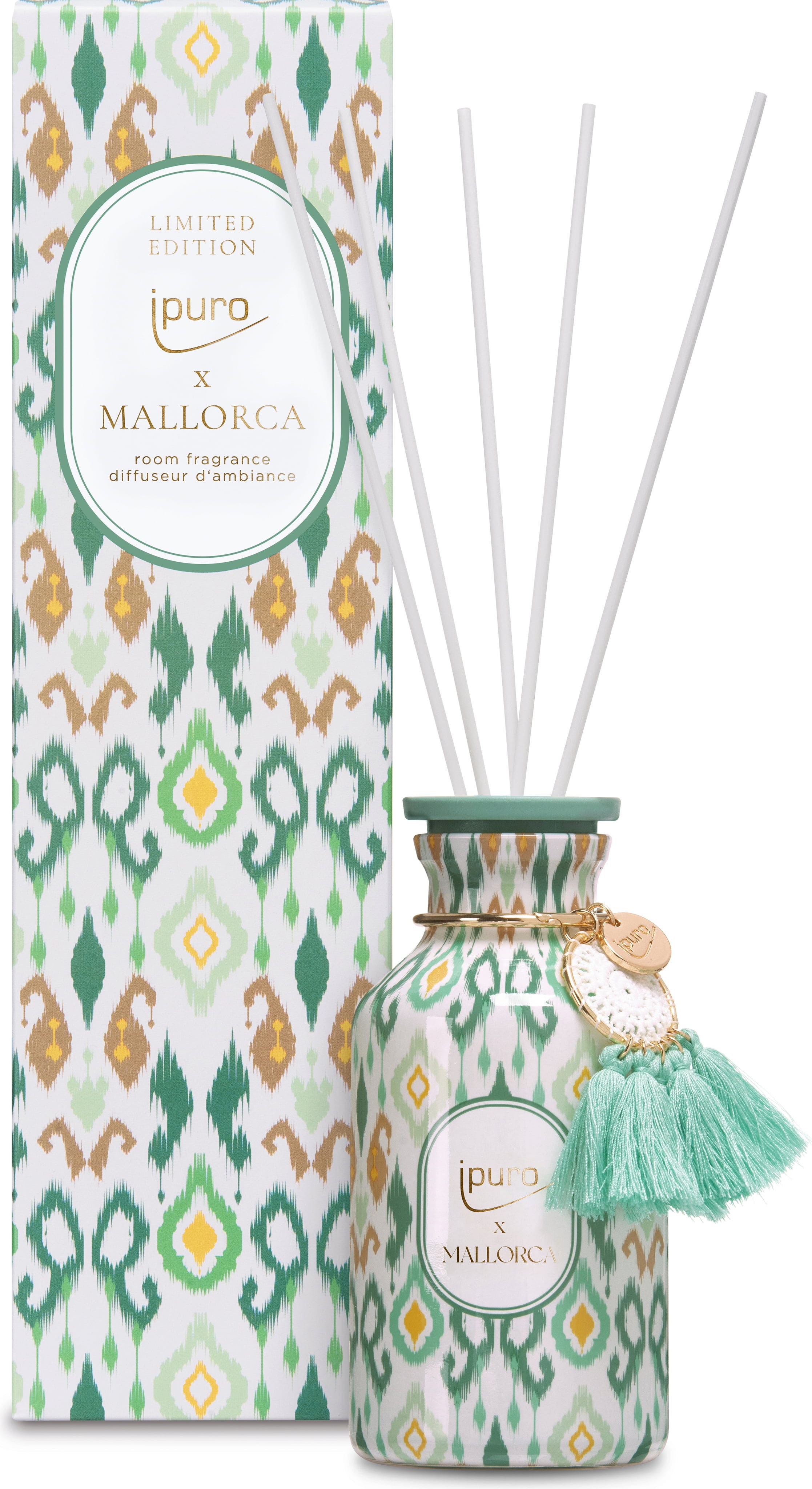 Izbová vôňa Mallorca od ipuro vyžaruje jedinečnú letnú vôňu a osviežuje obytné priestory. Jej vodné, citrusovo svieže arómy vytvárajú dovolenkovú atmosféru.
