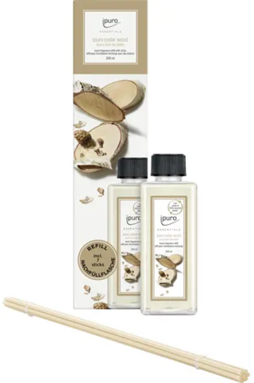 S touto praktickou náplňou môžete svoju izbovú vôňu ipuro jednoducho doplniť! Okrem 7 drevených tyčiniek obsahuje aj 200 ml izbovej vône Cedar Wood.