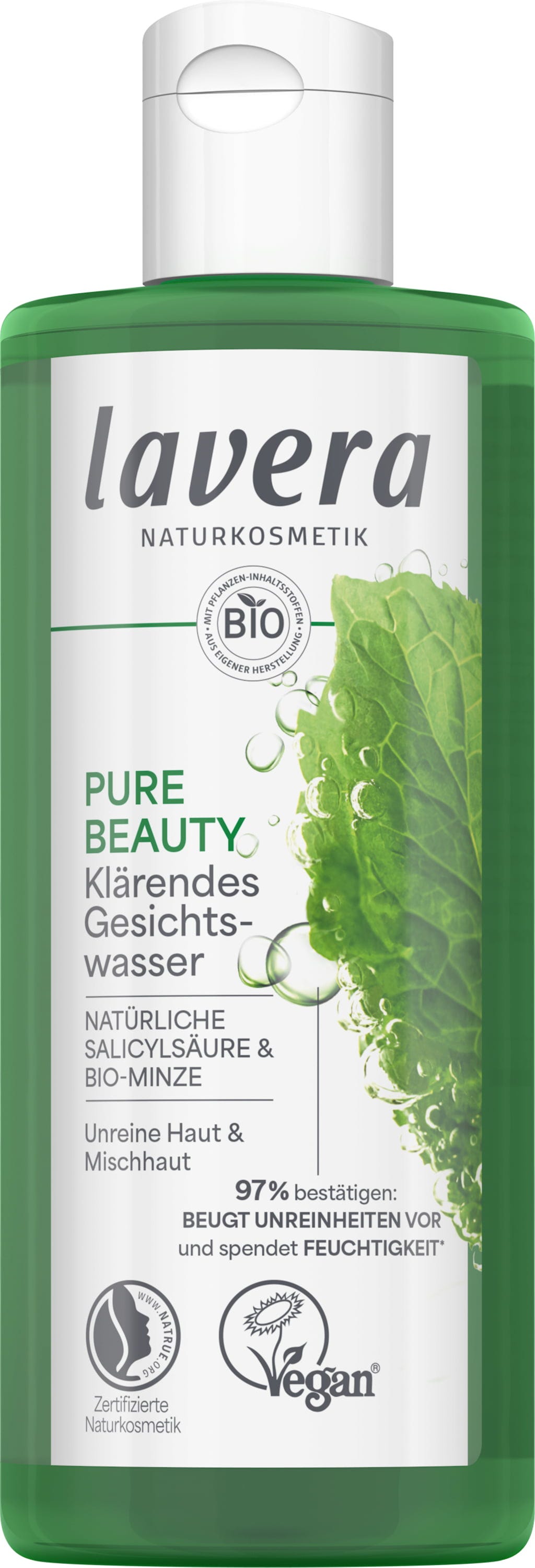 Pleťová voda Pure Beauty je špeciálne vyvinutá pre nečistú a zmiešanú pleť. Prírodné zloženie účinných látok má čistiaci a zmatňujúci účinok. Organická mäta a kyselina salicylová sťahujú pleť a pomáhajú prírodným spôsobom bojovať proti vyrážkam a nečistotám.