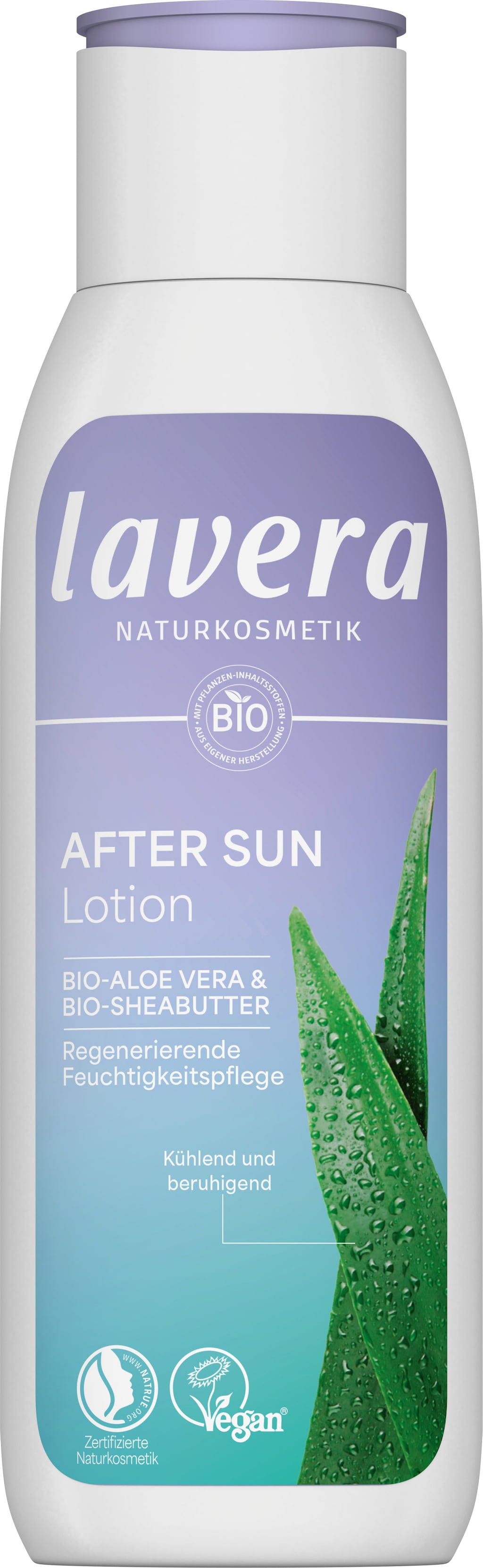 Mlieko po opaľovaní od značky lavera intenzívne hydratuje pokožku vďaka svojmu jedinečnému zloženiu s organickými zložkami, ako je aloe vera, bambucké maslo a vitamín E. Ľahká textúra sa rýchlo vstrebáva, skutočne sa rozplýva v pokožke a má príjemný chladivý účinok. Mlieko má aj regeneračné vlastnosti, ktoré posilňujú slnkom namáhané miesta a udržujú dlhotrvajúce opálenie.
