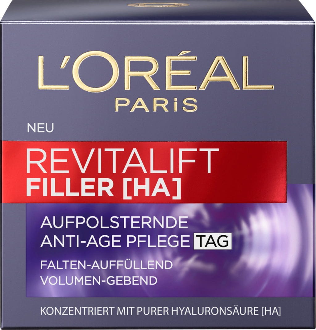Denná starostlivosť proti starnutiu REVITALIFT Filler obsahuje vysokokoncentrovanú kyselinu hyalurónovú, ktorá vypĺňa pleť a viditeľne ju spevňuje. Keďže obsah kyseliny hyalurónovej v pokožke s vekom klesá, jej dodaním môžete pôsobiť proti známkam starnutia pleti.