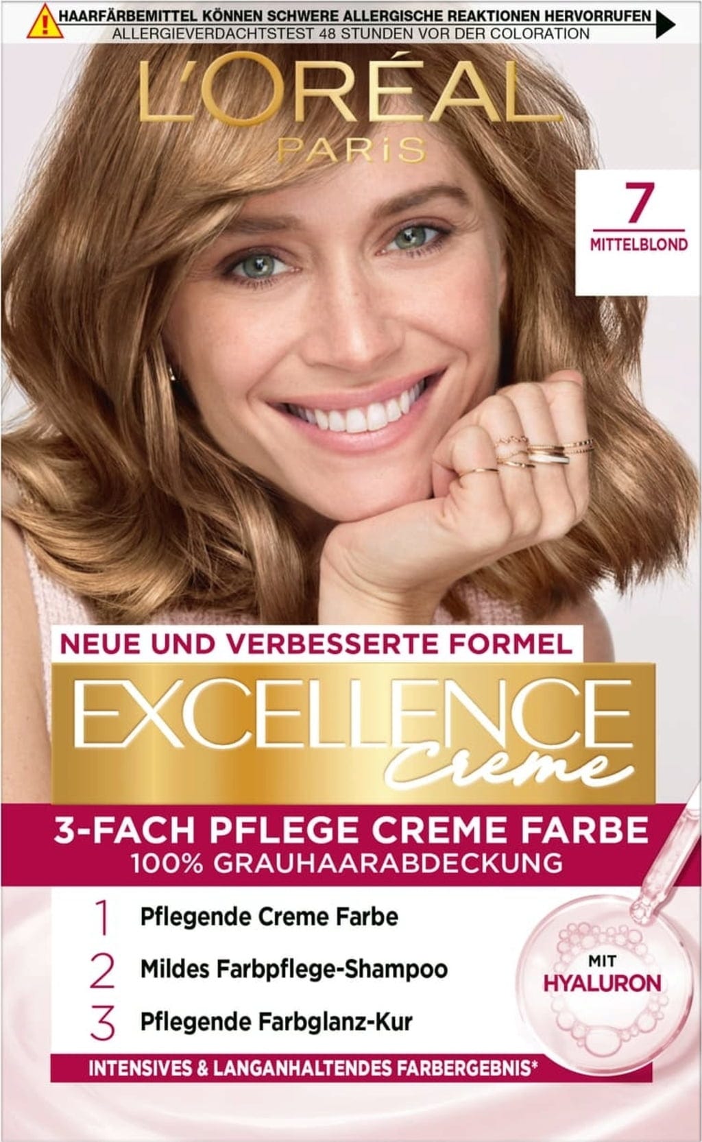 Krémová farba EXCELLENCE s bohatým zložením trojitej starostlivosti chráni vlasy počas farbenia a zanecháva žiarivý, intenzívny a prirodzený farebný výsledok. Jemný šampón na starostlivosť o farbu a bohatý ošetrujúci balzam dopĺňajú starostlivosť.