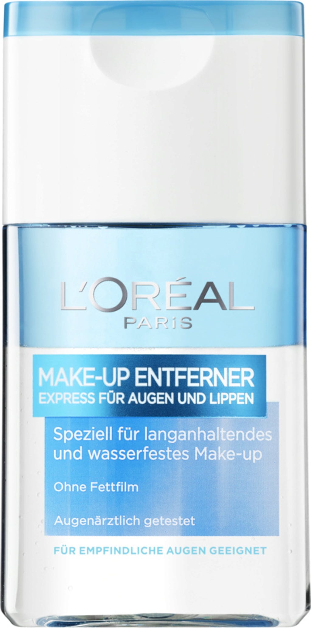 Tento odličovač s dvojfázovým účinkom spoľahlivo odstraňuje dlhotrvajúci a vodeodolný make-up bez zanechania mastného povlaku. Tmavomodrá fáza zaisťuje dôkladné čistenie pomocou jemných olejov. Svetlomodrá fáza s čistiacim pleťovým mliekom poskytuje mimoriadnu dávku sviežosti. Vhodný aj pre citlivé oči a pri nosení kontaktných šošoviek.