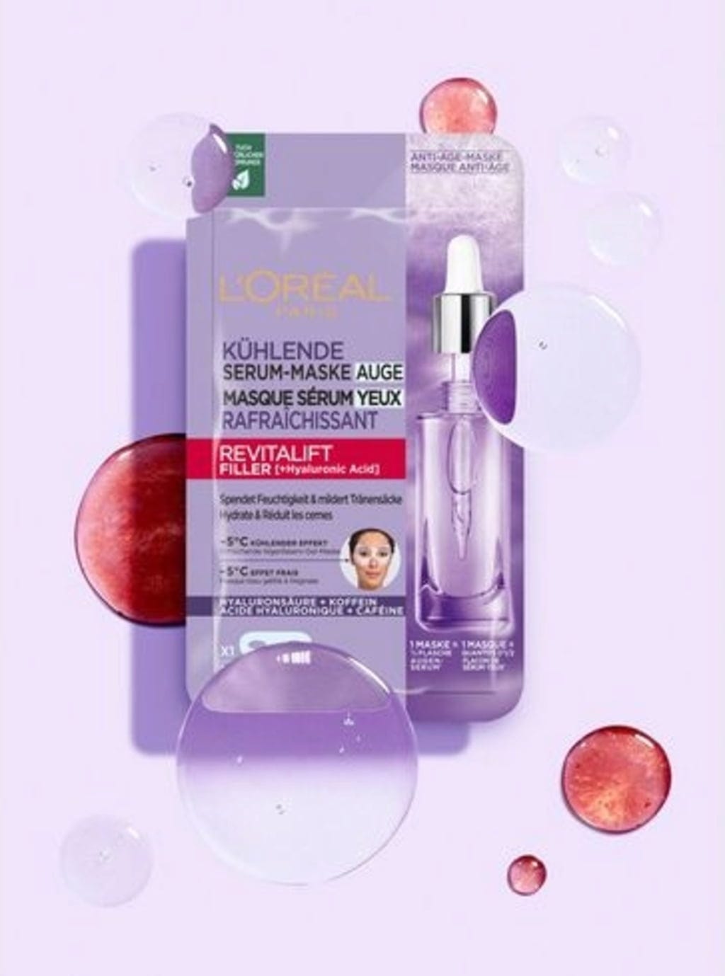 Textilná maska na oblasť očí REVITALIFT Filler vás osvieži! Chladivá maska so sérom dokáže pomôcť proti unaveným tmavým kruhom a opuchnutým viečkam a vďaka nej vaše oči opäť zažiaria už po 15 minútach aplikácie.