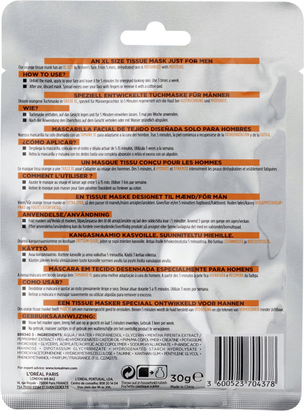 L'ORÉAL PARIS Textilná maska s taurínom MEN EXPERT Hydra Energy