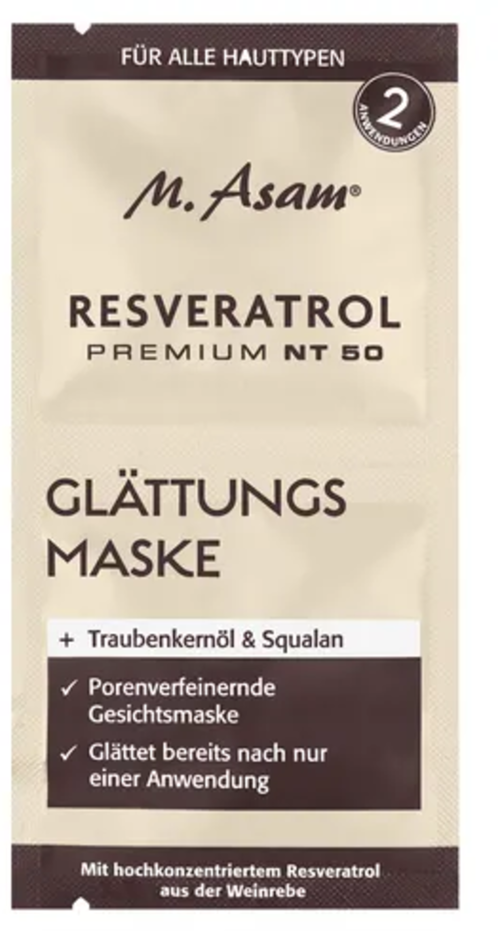 K dispozícii je recenzií v jazyku: slovenčina pre produkt: M.Asam RESVERATROL PREMIUM NT50 Smoothing Mask