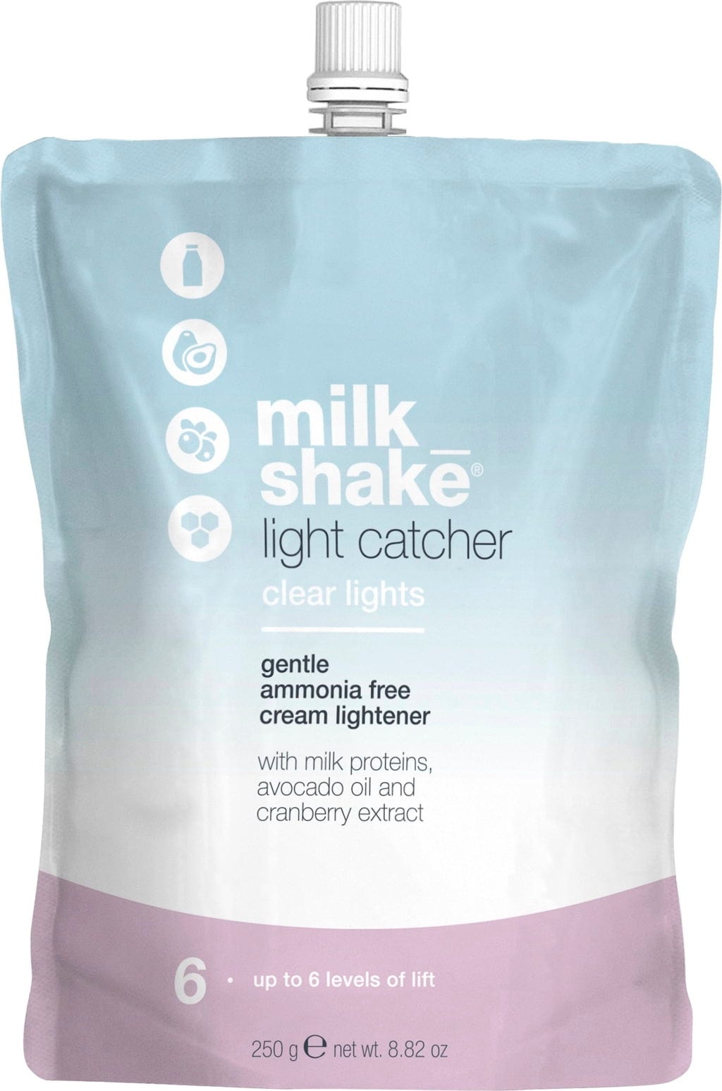 Light Catcher Clear Lights od milk_shake je jemný zosvetľujúci krém, ktorý zosvetlí vlasy až o 6 odtieňov. Krém taktiež poskytuje ochrannú starostlivosť vďaka avokádovému oleju a mliečnym proteínom. Zároveň sa ľahko nanáša.