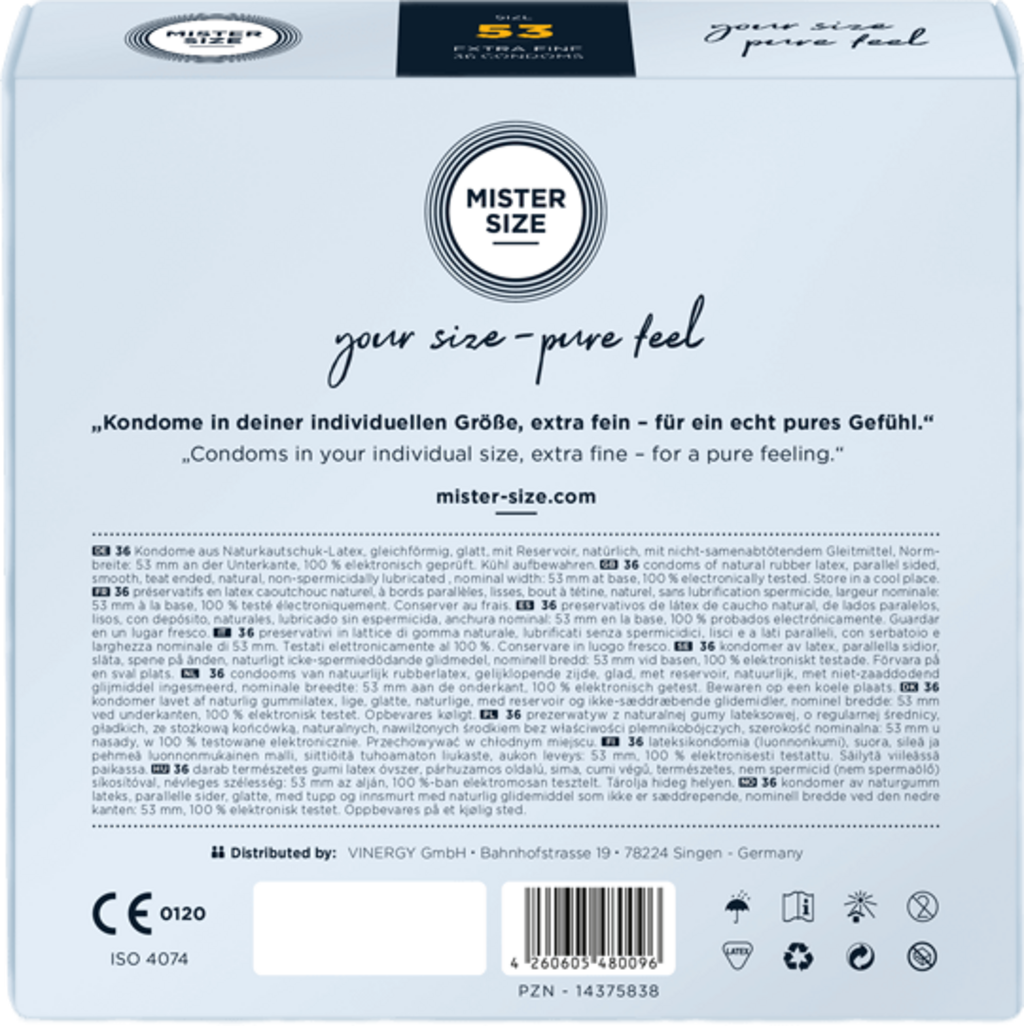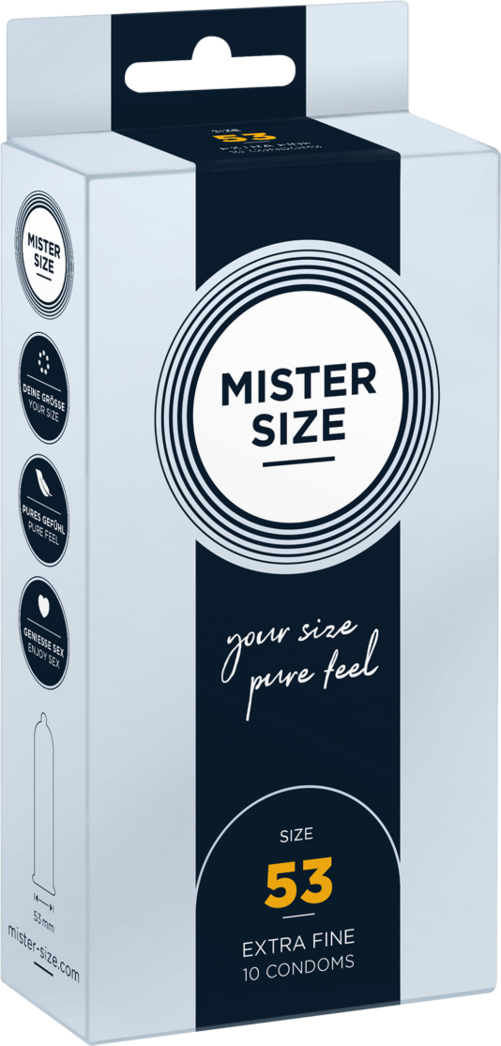 Spoľahlivá ochrana vďaka dokonalému prispôsobeniu - s kondómami MISTER SIZE si môžete bez obáv užívať každý okamih šťastia.