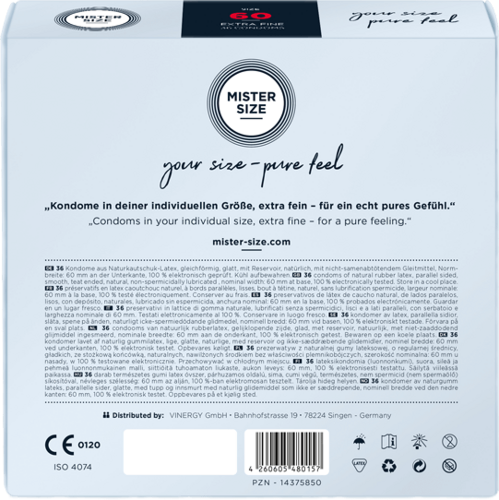 Spoľahlivá ochrana vďaka dokonalému prispôsobeniu - s kondómami MISTER SIZE si môžete bez obáv užívať každý okamih šťastia.