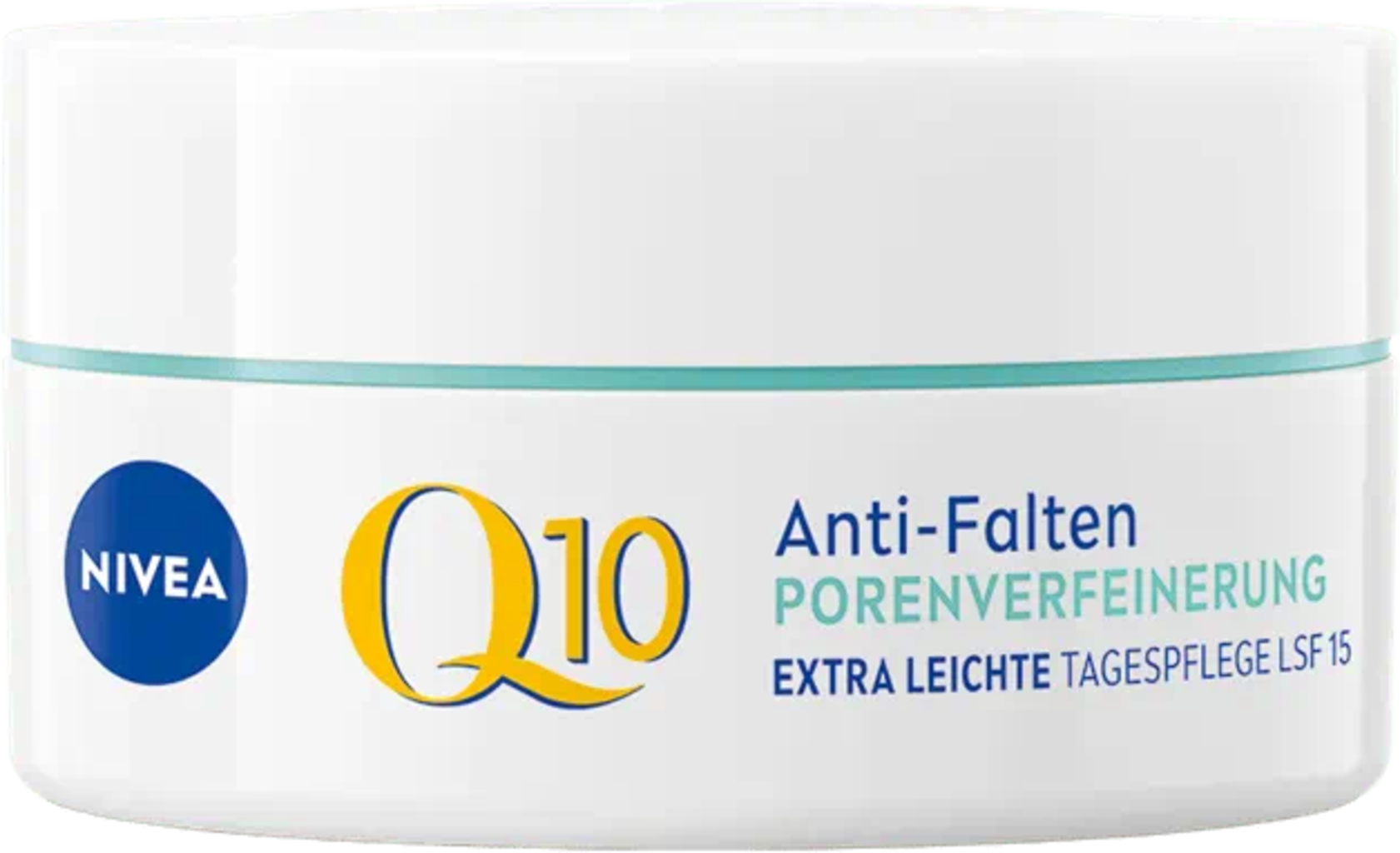 Denná starostlivosť NIVEA Q10 proti vráskam už po krátkom čase zjemňuje póry, vyhladzuje vrásky a vypína pleť. SPF 15 a UVA filtre poskytujú dodatočnú ochranu pred starnutím pleti spôsobeným slnkom.