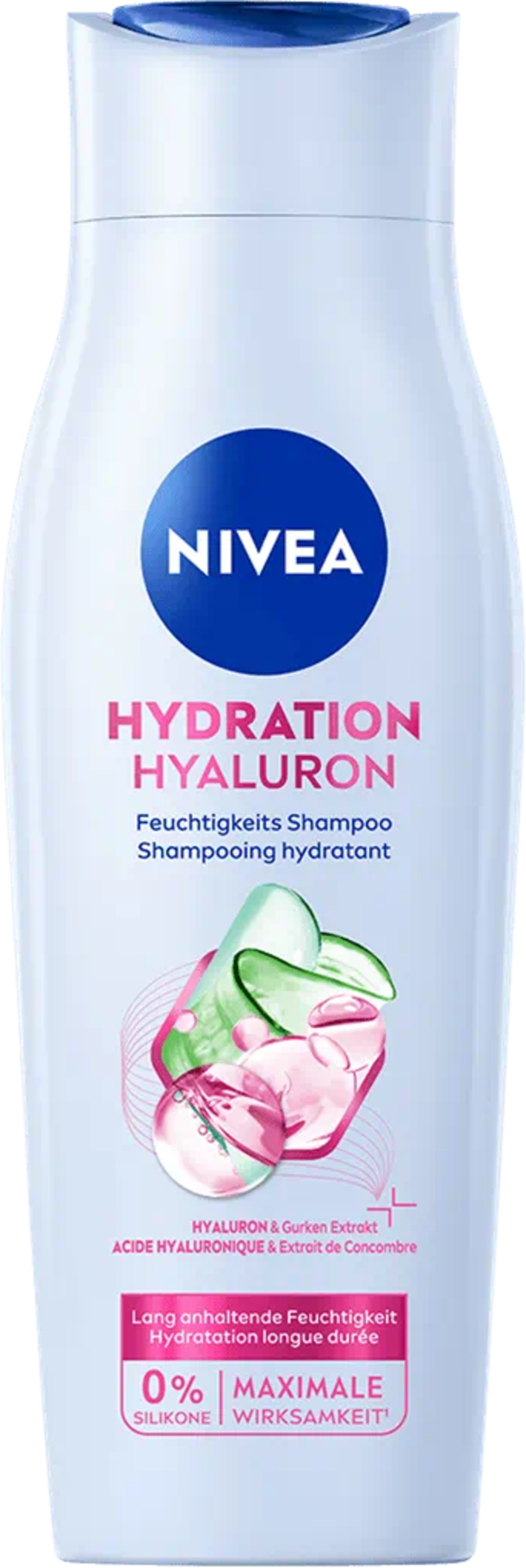 Výživné zloženie s kyselinou hyalurónovou a prírodným výťažkom z uhorky poskytuje suchým vlasom dlhotrvajúcu hydratáciu, dodáva im prirodzený lesk a dokáže tiež zlepšiť ich pružnosť.