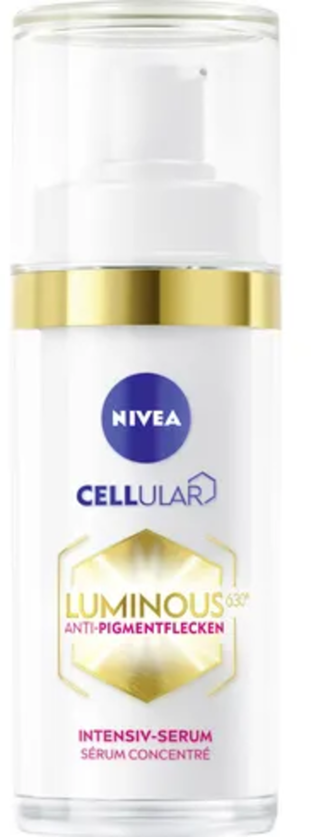 Cellular Luminous 630 značky NIVEA je ľahké, intenzívne sérum proti pigmentovým škvrnám. Má rozjasňujúci účinok, zmenšuje veľkosť škvŕn a pomáha pleti predchádzať vzniku nových pigmentových škvŕn.