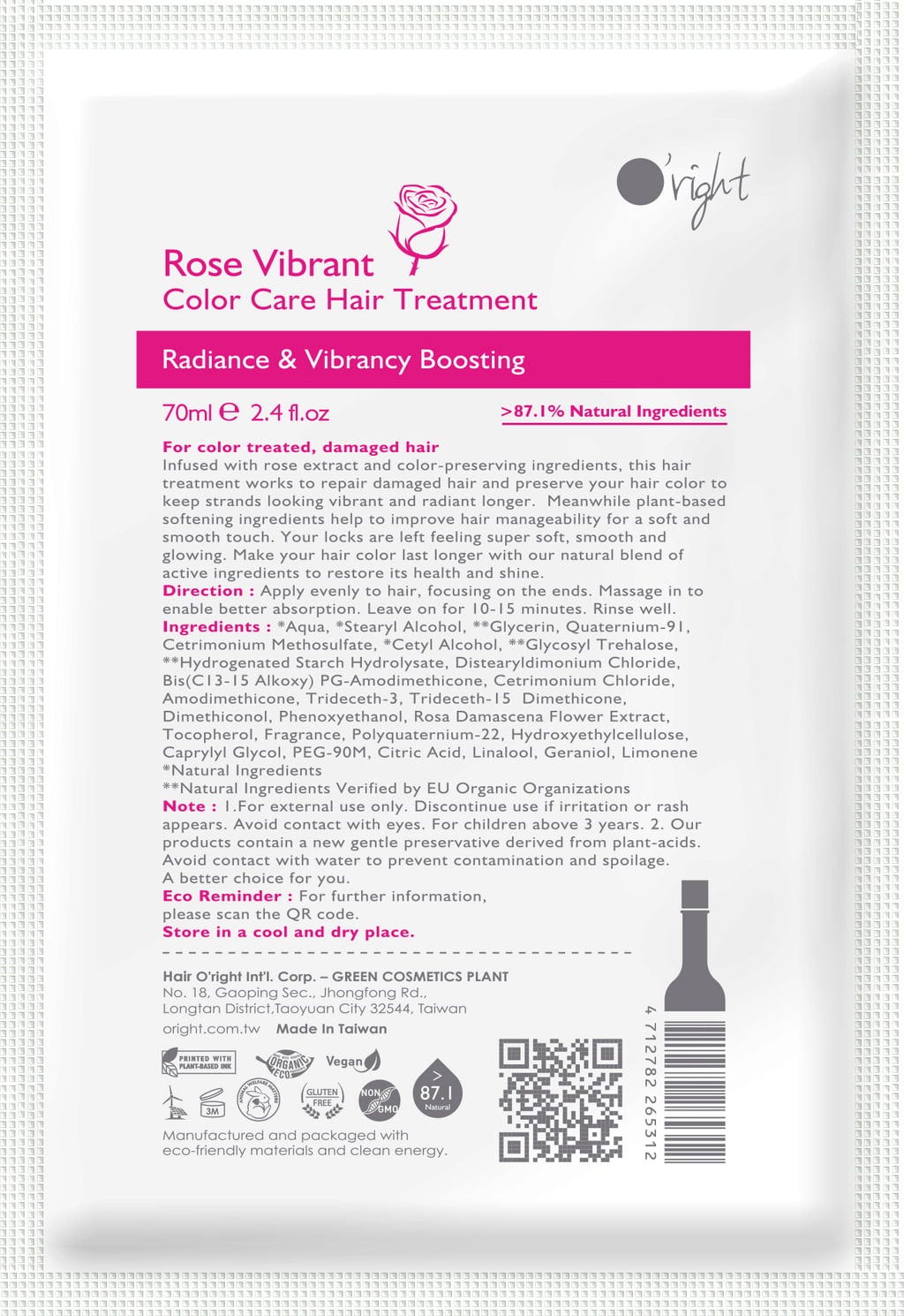 O'right Rose Vibrant Color Care Hair Treatment, 70 ml