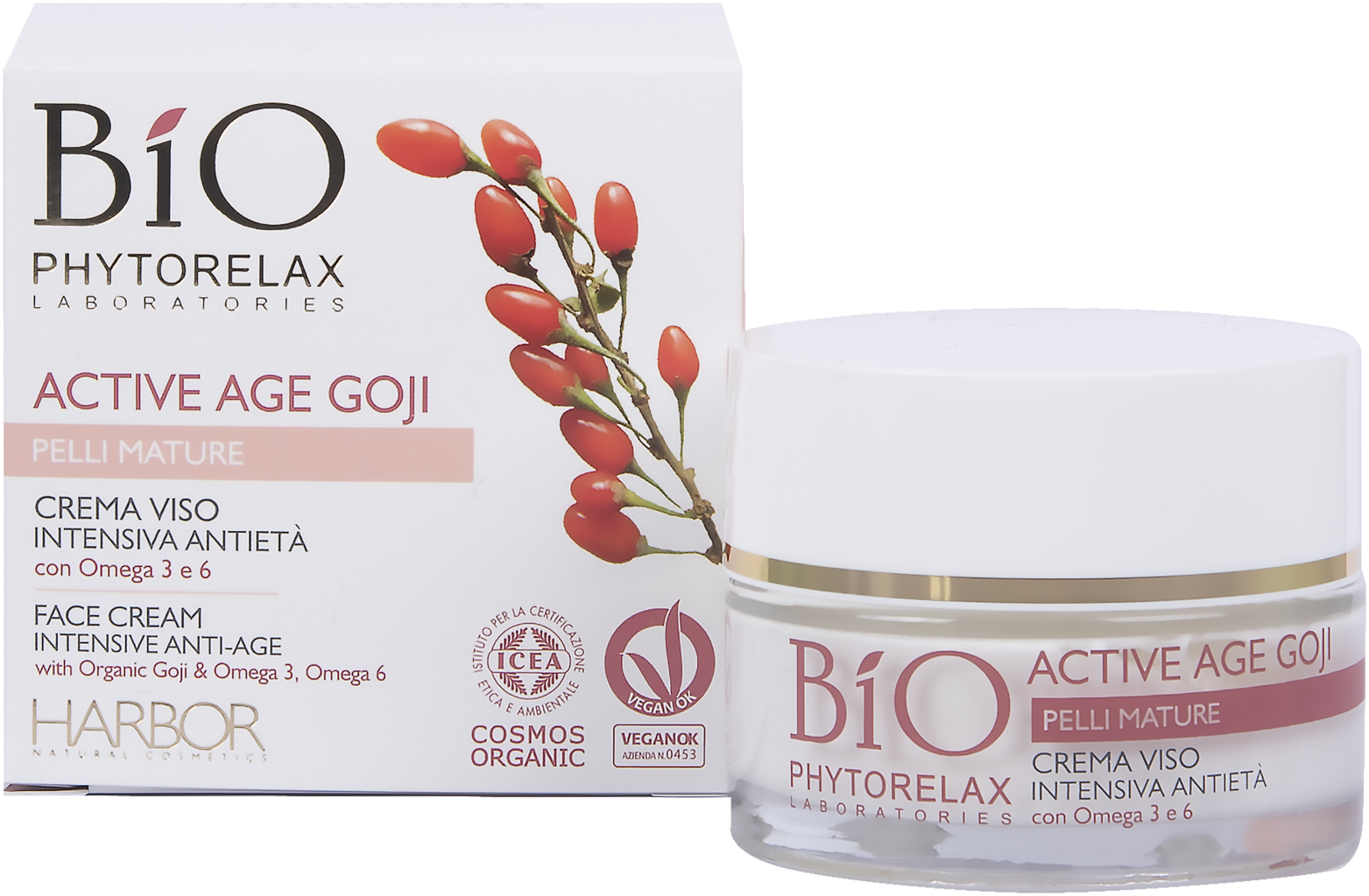 Active Age Goji Intensive Anti-Age Face Cream od spoločnosti PHYTORELAX LABORATORIES obsahuje Omega 3 a Omega 6 z rastlinných olejov, ako aj goji, ktoré má údajne antioxidačné vlastnosti. Vegánsky denný krém má bohatú, ale zároveň roztápajúcu sa textúru, a preto ho možno použiť aj ako podklad pod make-up. Poskytuje pleti hodnotnú, hĺbkovú výživu na celý deň a môže pomôcť dodať pleti väčšiu pevnosť.