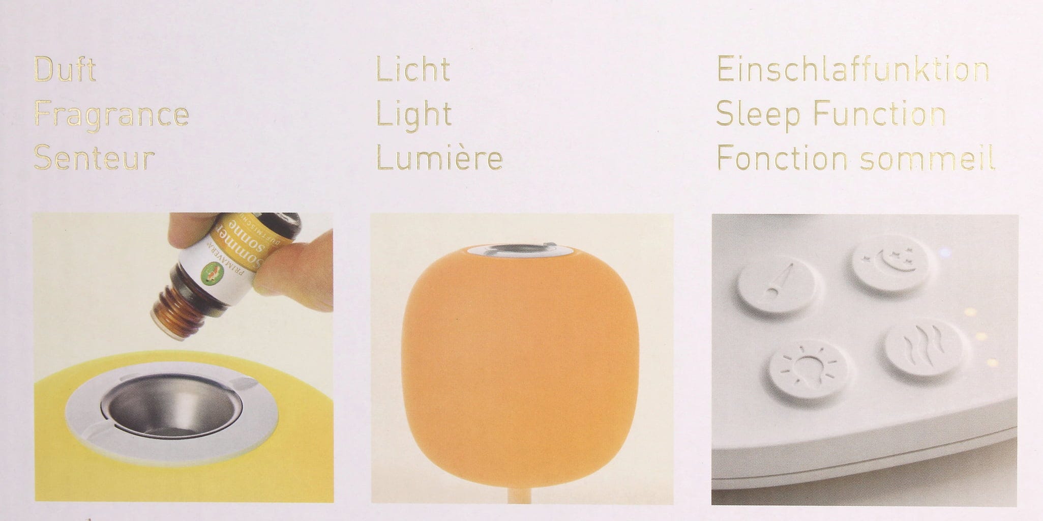 Vôňa a svetlo v tej najkrajšej podobe - táto vysokokvalitná aromalampa spája vôňu a svetelnú terapiu a vytvára príjemný zážitok pre telo, myseľ aj dušu. vďaka 6 rôznym farebným režimom alebo teplej bielej dosiahnete harmonické osvetlenie, zatiaľ čo esenciálne oleje dokážu vytvoriť príjemnú klímu v miestnosti bez potreby vody.