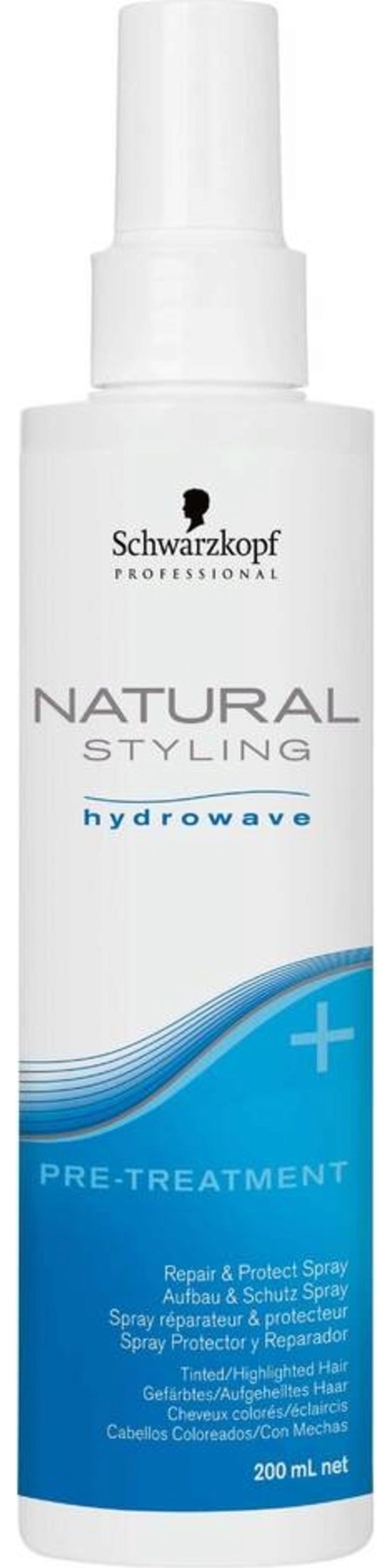 Natural Styling Pre-Treatment Repair & Protect od Schwarzkopf Professional obsahuje hydrolyzovaný hodvábny proteín a ochranný kolagén so špeciálnymi katiónovými zložkami, ktoré vyrovnávajú pórovitosť a chránia vlasy počas procesu trvalej. Prirodzený stylingový predošetrujúci a ochranný sprej s hydrolyzovaným keratínom opravuje poškodené miesta zvnútra pred trvalou.