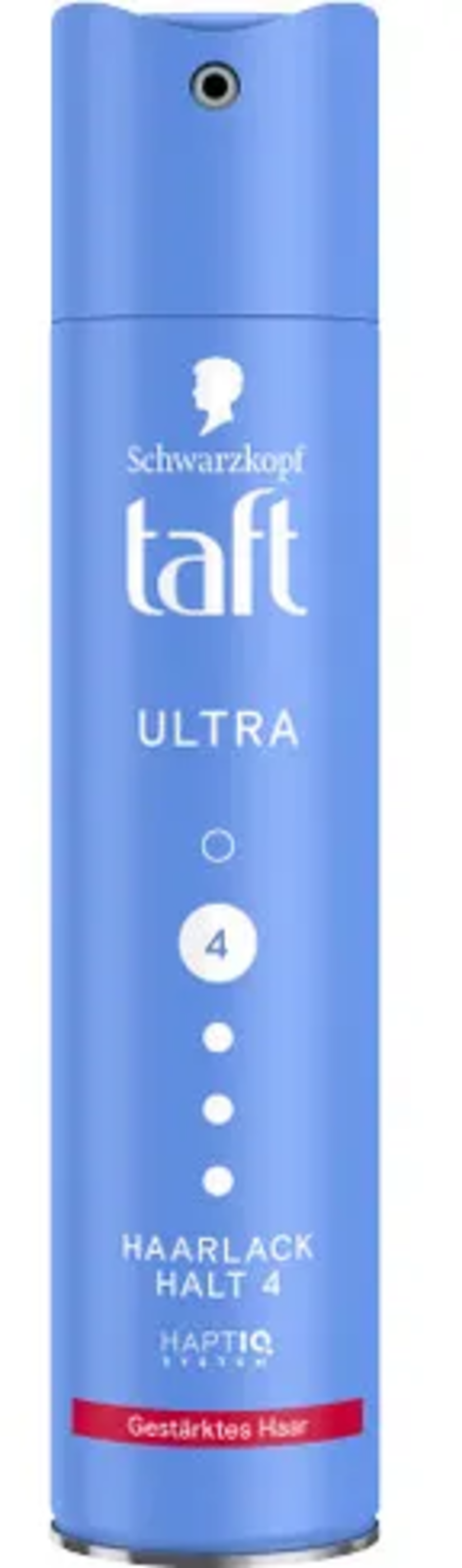 Lak na vlasy Taft Ultra od spoločnosti Schwarzkopf ponúka silnú fixáciu pre všetky typy vlasov. S úrovňou fixácie 4 zaručuje dlhotrvajúci účes. Vďaka systému HaptIQ je štruktúra vlasov posilnená zvnútra. Zloženie je vegánske a neobsahuje silikóny.