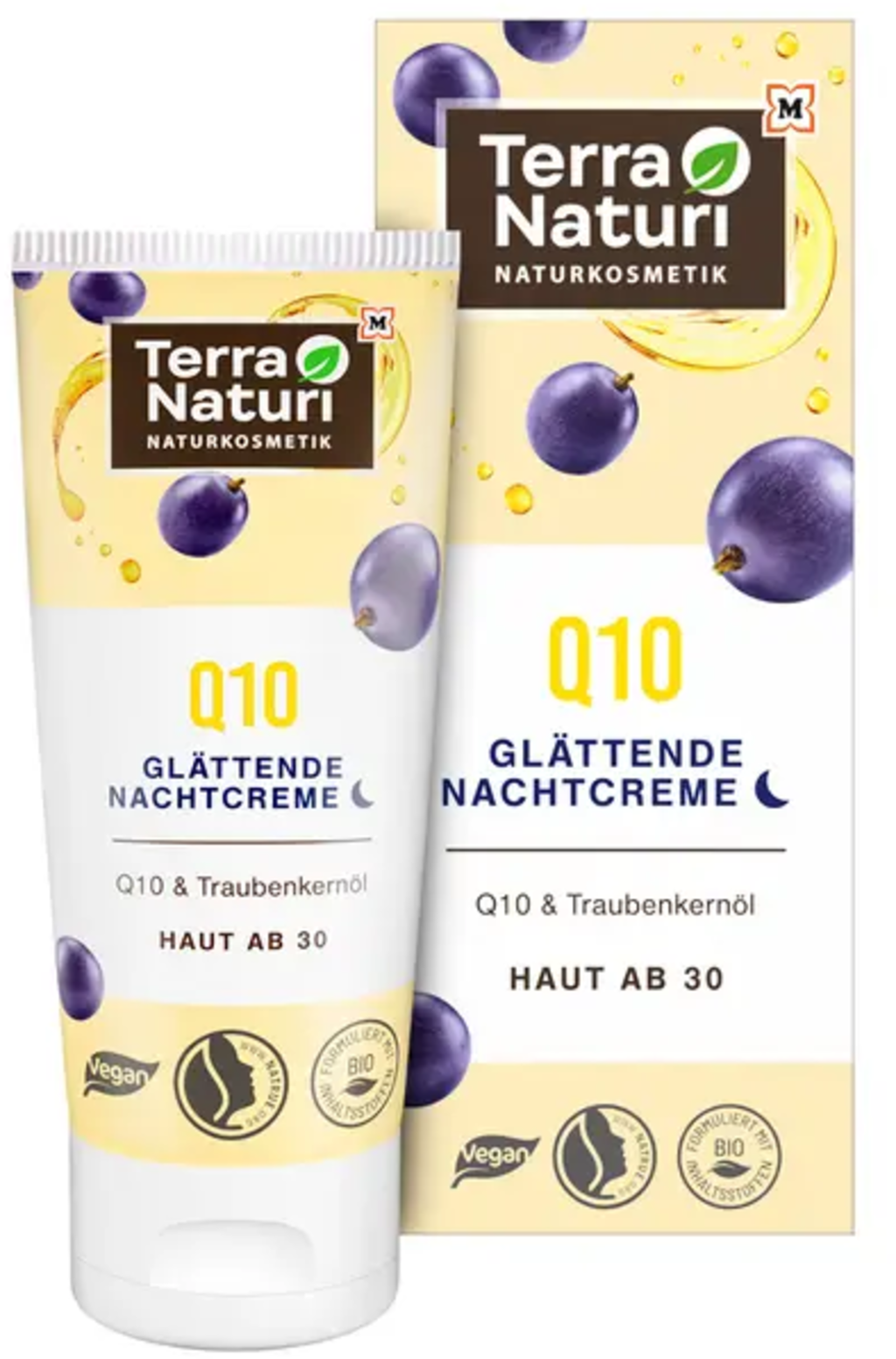 Bohatý nočný krém Q10 poskytuje optimálnu starostlivosť pre pleť staršiu ako 30 rokov. Olej z hroznových jadierok a lipidová kombinácia vybraných rastlinných olejov majú vyhladzujúce vlastnosti a dodávajú pleti esenciálne mastné kyseliny. Zároveň pleť intenzívne hydratuje a zabraňuje pocitu suchosti.