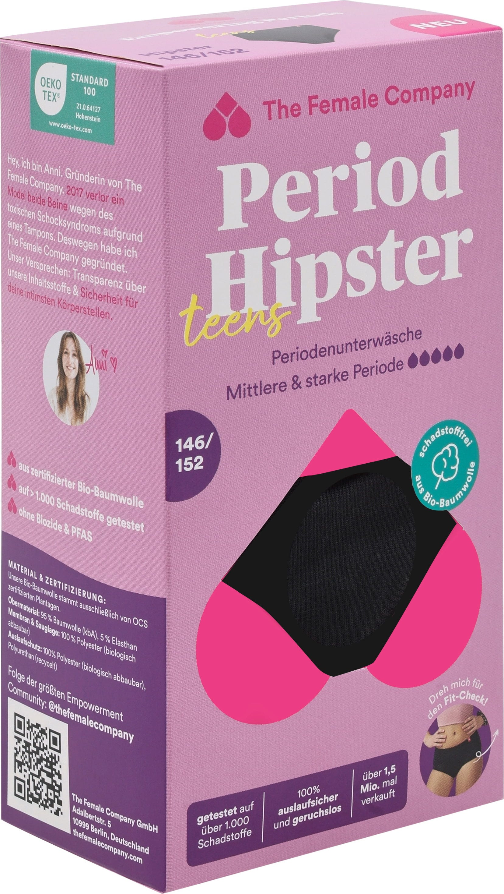 Táto menštruačná bielizeň bola navrhnutá špeciálne pre tínedžerky. Vyzerá ako bežné nohavičky, je len o 1 mm hrubšia, mimoriadne savá a poskytuje maximálny komfort počas menštruácie. Vďaka inovatívnej technológii švov Fluid Protection® spoľahlivo zabraňuje úniku po stranách a zaisťuje pocit bezpečia.