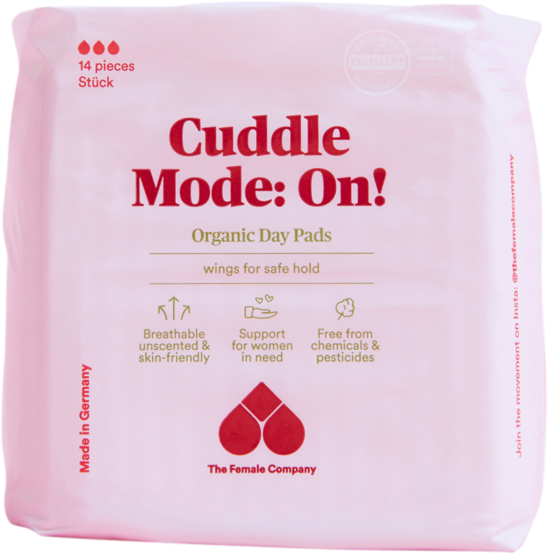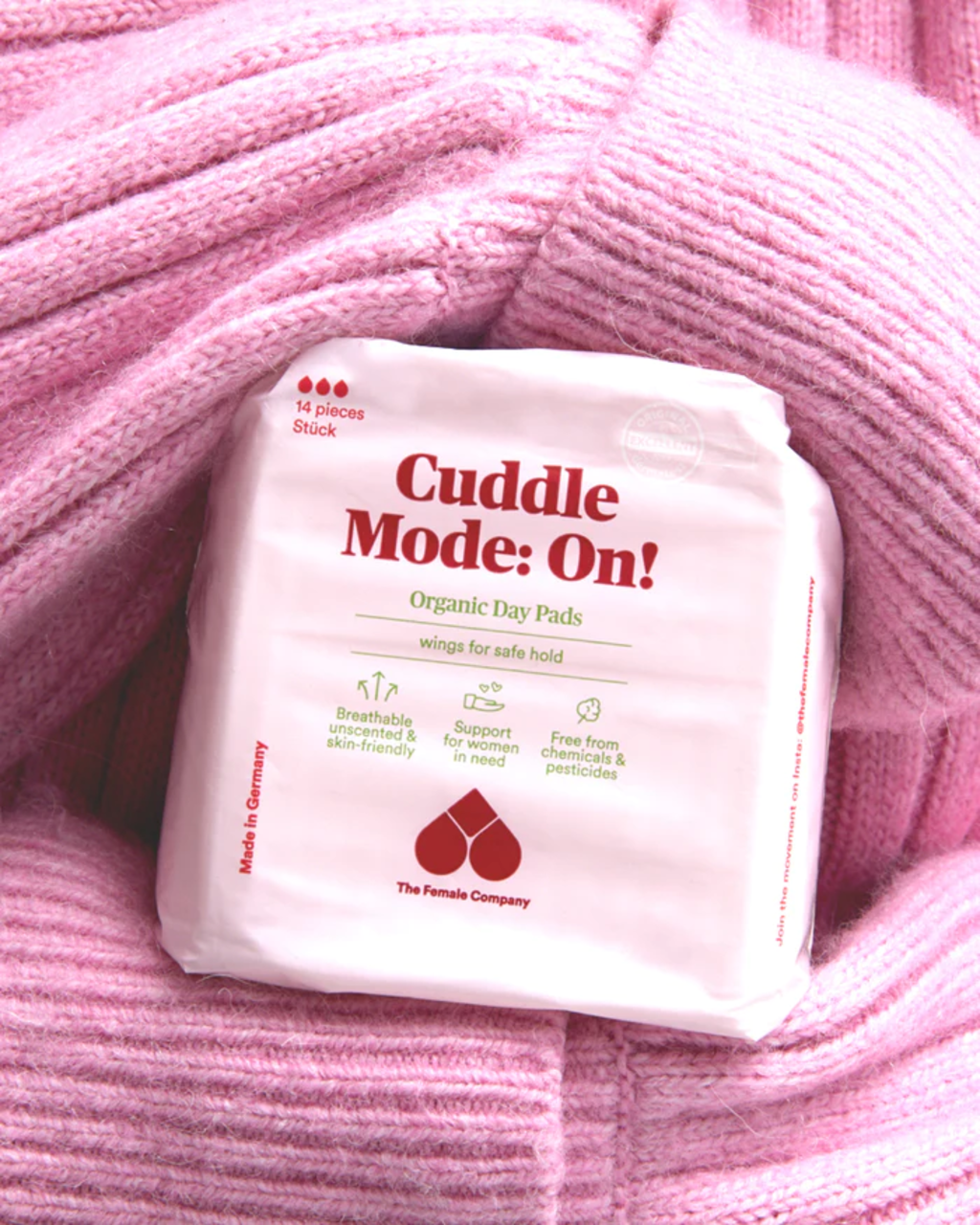 Vložky od spoločnosti The Female Company nielenže poskytujú účinnú ochranu počas menštruácie, ale sú tiež vyrobené z udržateľných surovín: strana, ktorá prichádza do kontaktu s pokožkou a citlivou intímnou oblasťou, je vyrobená z čistej organickej bavlny bez parfumácie a vôbec nemá polyesterovú vrstvu. Lepiaca podkladová strana je vyrobená z biopolyméru namiesto plastu. Vďaka tomu sú mimoriadne šetrné k pokožke a priedušné. Obe verzie majú krídelká, a preto ponúkajú spoľahlivú a pohodlnú ochranu.