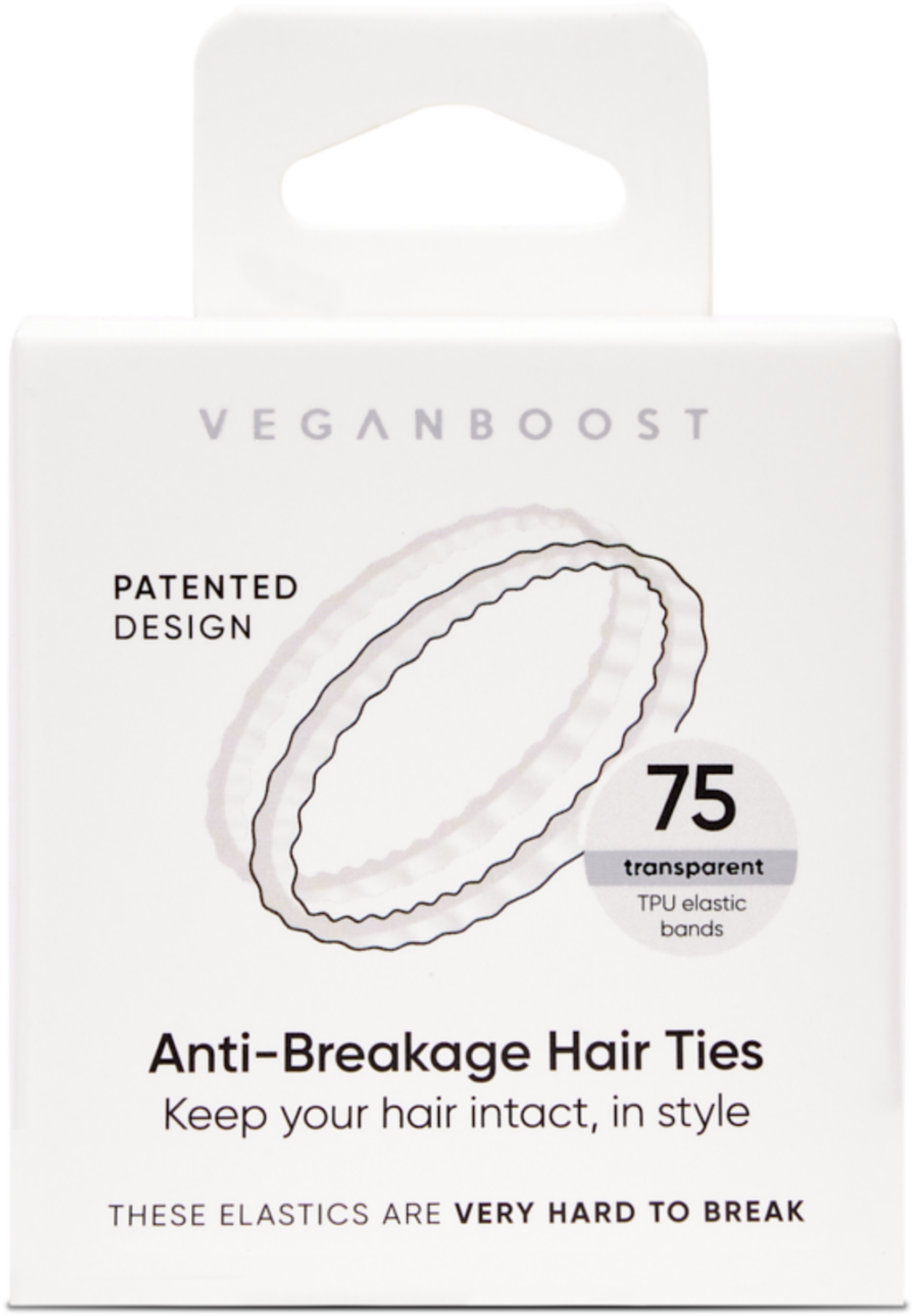 Veganboost Gumičky do vlasov (proti lámaniu vlasov), transparentná (75 ks)