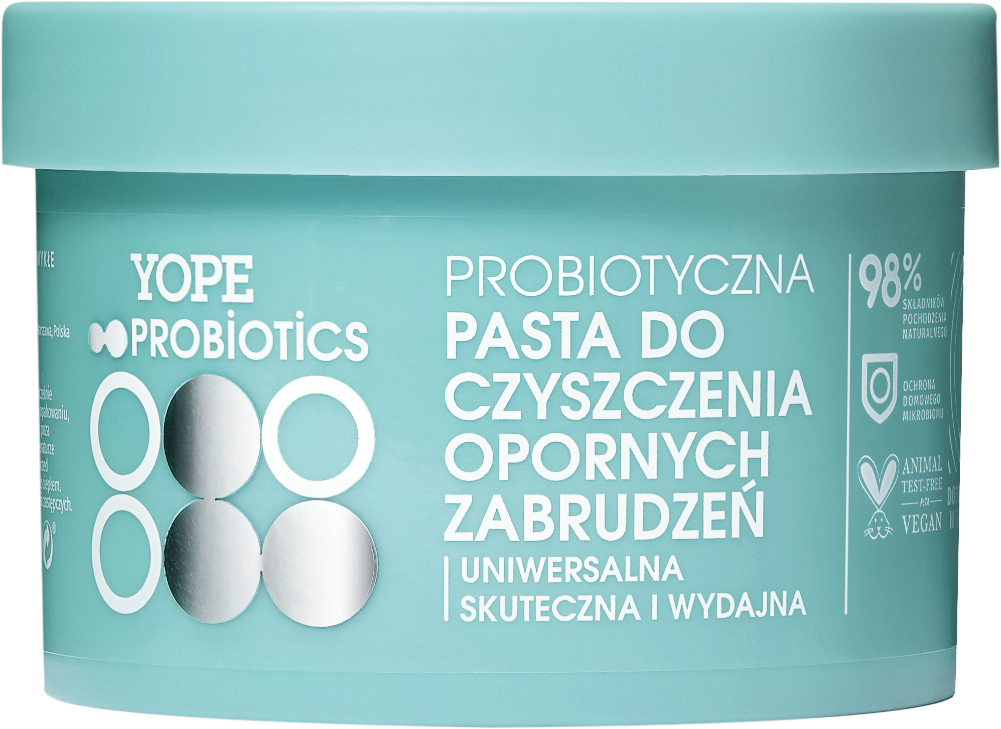 Keď bežné čistiace prostriedky dosiahnu svoje limity, probiotická čistiaca pasta YOPE prevezme úlohu a odstráni nečistoty aj z hlbokých prasklín a odolných usadenín. Či už v kuchyni alebo v kúpeľni - táto sila preniká hlboko do povrchových štruktúr, aby uvoľnila nečistoty tam, kde sú najodolnejšie.